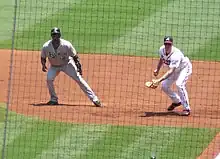 Ramírez (left) leading off first against the Atlanta Braves in 2008