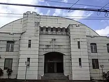 The Cow Palace was on the Hilo Bay front near the east end of Moʻoheau Park and was built before World War I for the H. Hackfield Company; it survived the two major tsunamis that destroyed bayfront Hilo after the 1946 Aleutian Islands earthquake and the 1960 Valdivia earthquake.[7][8][9] It was nicknamed for its resemblance to the more famous stadium near San Francisco, although it was already known as the Hilo Recreation Building in 1956, when it was used as the venue for the 4th annual orchid show.[10] Part of the roof collapsed in spring 1969 due to termite damage and heavy rains, leading to its demolition;[7] it had served the "Grog Shoppe" for the Merry Monarch Festival,[11]: 10 but the bar was moved to one of the butler buildings in 1969.[12]: 22