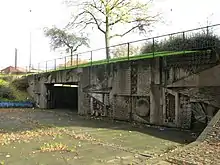 The work comprises three 3-metre (9.8 ft) high panels cast in pigmented concrete in deep relief, incorporating motifs including "sunbursts, donuts, triangular wedges and shards" and Aztec-like symbols.[2][1] Mitchell said "that the treatment of the external face of the underpass provided climbing opportunities for the adventurous",[1] and a group of student rock-climbers have plotted bouldering routes on the murals.[2]