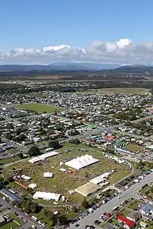 Wildfoods has traditionally been run on the second Saturday in March, the driest time on the West Coast.[1][5] The weather has generally been fine, but in the third festival in 1992 a squall blew down the festival tent.[3] By that year visitor numbers had increased to 3,800, so in 1993 Wildfoods moved to its current venue of Cass Square, which has a capacity of 10,000.[3][6][7] In 1994 for the first time the festival was opened by the West Coast Member of Parliament, Damien O'Connor, rather than the Mayor of Westland. One councillor decried the involvement of a "foreigner" as "propaganda by the Labour Party".[8]