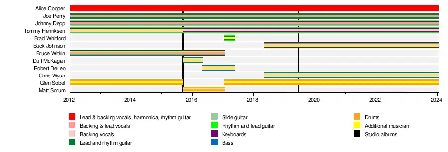 This is an approximate timeline of Hollywood Vampires members and their touring band.
