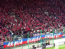 ![]() Wisła Kraków supporters displaying banner "Army of the White Star", 2011 | |