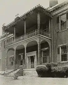 A two-story kitchen flanked a rear corner of the mansion.[2] The grounds also contained a two-story carriage house made of brick.[2]