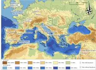 - ↑ Moyano, I. T.; Barsky, D. (2011). "The archaic stone tool industry from Barranco León and Fuente Nueva 3, (Orce, Spain): Evidence of the earliest hominin presence in southern Europe". Quaternary International. 243 (1): 80–91. Bibcode:2011QuInt.243...80M. doi:10.1016/j.quaint.2010.12.011.