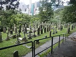Hong Kong Cemetery is a public cemetery managed by the Food and Environmental Hygiene Department.[1] Hong Kong Cemetery contains 79 scattered Commonwealth burials of the First World War and 62 from the Second World War, which are maintained by the Commonwealth War Graves Commission.