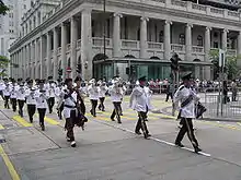 The Hong Kong Police Marching Band also known as the HKPF Marching Band is a ceremonial unit and a police band of the Hong Kong Police Force and is used for official events. It was established in 1954 and initially performed with the Hong Kong Police Silver Band (formed in 1951). Both bands merged to form a single band and was later renamed the Royal Hong Kong Police Pipe Band.