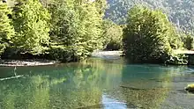 The three main bodies of water in the park are Pinto Concha Lake 4.75 km2 (2 sq mi), Cabrera Lake 1.55 km2 (1 sq mi) and Inexplorado Lake 1.5 km2 (1 sq mi).[1] Pinto Concha is the most visited attraction in the park.[2] There are six main rivers in the park. Inexplorado Lake is one of a series of paternoster lakes that form part of the Blanco River drainage basin. The aforesaid lakes are characterized by distinctive blue and green hues, due to rock flour suspended in their waters and give to the river its milky appearance. Negro River is another major river system in the park.