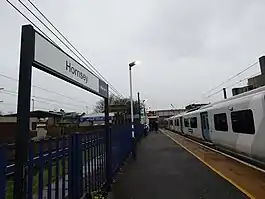 Hornsey railway station is in Hornsey in the London Borough of Haringey, north London. It is on the Great Northern route that forms part of the East Coast Main Line, 4 miles 4 chains (6.5 km) down the line from London King's Cross, and is situated between Harringay to the south and Alexandra Palace to the north.[2]