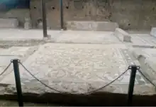 The existing nearby public baths, after being destroyed in a fire, were reconstructed between 323 and 326 (therefore renamed Thermae Helenianae).[15] A residential area for members of the court (e.g. the so-called "Constantinian domus" excavated between 1996 and 2008) was created close to the aqueduct,[16] and the part of the circus that remained inside the walls was restructured for service, connection and perhaps residences for the servants of the imperial court.[8]