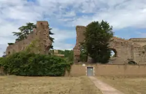 Until the accession to the throne of Aurelian after a dozen emperors had followed one another, construction of the Aurelian Walls between 271 and 275 interrupted the horti's vast continuity, cutting in two the Circus Varianus and incorporating the Amphitheatrum Castrense into the walls as a bastion.[8]