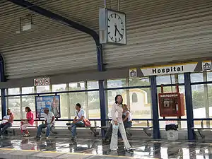 The Hospital Station (Spanish: Estación Hospital) is a station on Line 1 of the Monterrey Metro. It is located on Simón Bolivar Avenue near the Universidad Autónoma de Nuevo León (UANL) Medical Campus and the University Hospital (Hospital Civil). This station is located in the Colon Avenue in the northeast side of the Monterrey Centre. The station was opened on 25 April 1991 as part of the inaugural section of Line 1, going from San Bernabé to Exposición.[1]