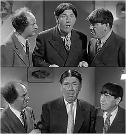 - 1 2 Solomon, Jon. (2002) The Complete Three Stooges: The Official Filmography and Three Stooges Companion, p. 461; Comedy III Productions, Inc., ISBN 0-9711868-0-4