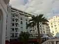 The present hotel is the result of the merger of the parcels of the former hôtel Beau-Rivage and of two neighbouring villas. Construction began in 1923 under the leadership of architect Théo Petit, also architect of the hôtel Normandy at Deauville. He produced an art deco design with a main façade and 2 rear wings, but only the east wing and the main body were finished when the hotel opened in 1926. The rest of the central body of the building was extended in 1928 by the architects Charles Nicod and Émile Molinié, at which date the interiors were also redecorated by Maurice Debenedetti. 2 floors were added to the top of the building in 1965 and in 1990 the façades were rebuilt uniformly in their original art deco style.[1]