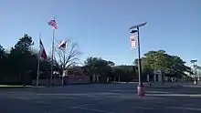 Memorial serves[7] students in all of the Memorial Villages (including Bunker Hill Village,[8] Hedwig Village,[9] Hilshire Village,[10] Spring Valley Village,[11] and most of Hunters Creek Village[12] and Piney Point Village[13]). While the school has a Houston address, it is located in the city of Hedwig Village,[9] and it draws from a small portion of Houston in the Memorial and Spring Branch regions (including Stablewood, Afton Village, Brykerwoods, Monarch Oaks, Spring Oaks, Sandalwood, Whispering Oaks, and portions of Westview Terrace).[7] A section of the Memorial City district is within the school's attendance zone.[14] Memorial High School has eleven lunch vendors that deliver meals to students on campus during their respective lunch periods.[15]