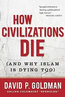 How Civilizations Die (And Why Islam Is Dying Too) is a book written by the author and economist David P. Goldman, published on September 19, 2011 by Regnery Publishing. It discusses the declining in birthrates of both Europe and Islamic nations.[1] In his view the decline in birthrates leads to the passive attitude of Europe, and the aggressive and violent attitude of the Islamic world, not from a stand of power, but from a point of desperate action. Most of the book is based on articles he published under the pseudonym "Spengler" on the Asia Times newspaper.