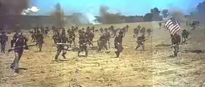 For "The Civil War" segment, footage from MGM's 1957 Film "Raintree County" of the Civil War Battle of Chickamauga were used for combat scenes during the day, as the scenes with Peppard, Tamblyn, Wayne and Morgan were all at night.