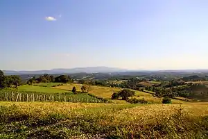 Hrvatsko Zagorje (pronounced [xř̩ʋatsko zǎːɡorje]; Croatian Zagorje; zagorje is Croatian for 'backland' or 'behind the hills') is a cultural region in northern Croatia, traditionally separated from the country's capital Zagreb by the Medvednica Mountain. It comprises the whole area north of Mount Medvednica up to Slovenia in the north and west, and up to the regions of Međimurje and Podravina in the north and east.[1] The population of Zagorje is not recorded as such, as it is administratively divided among Krapina-Zagorje County (total population 142,432), and western and central part of Varaždin County (total population 183,730). The population of Zagorje can be reasonably estimated to exceed 300,000 people.