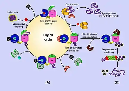 11. Mashaghi A, Bezrukavnikov S, Minde DP, Wentink AS, Kityk R, Zachmann-Brand B, et al. (November 2016). "Alternative modes of client binding enable functional plasticity of Hsp70". Nature. 539 (7629): 448–451. Bibcode:2016Natur.539..448M. doi:10.1038/nature20137. PMID 27783598. S2CID 4401991.