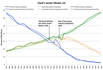 - ↑ "Who Makes It? Clark's Sector Model for US Economy 1850–2009". Retrieved 29 December 2011.