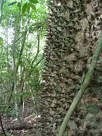Detail of the spines on the bark of a Hura tree