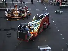 The ride racks onto a single 48-foot (15 m) trailer, and can be assembled by two people in just over two hours.