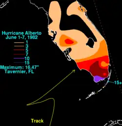 - ↑ David Roth (2006). "Rainfall summary for Hurricane Alberto (1982)". Hydrometeorological Prediction Center. Retrieved 2007-02-10.