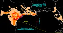 This article incorporates text from this source, which is in the public domain. - ↑ Ernest Carson (1958). Preliminary Report on Tropical Storm Ella. Weather Bureau Office Galveston, Texas (Report). National Hurricane Center. Retrieved March 6, 2013.