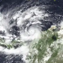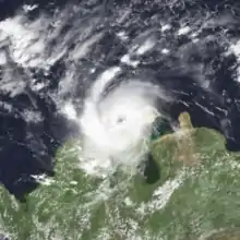 Tropical Storm Joan shortly after passing over the Guajira Peninsula on October 17