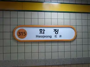 - ↑ "Hwajeong". Seoul Metro. Archived from the original on 2016-08-19. Retrieved 2016-08-08.