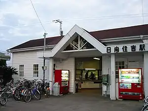 Hyūga-Sumiyoshi Station (日向住吉駅, Hyūga-Sumiyoshi-eki) is a passenger railway station locted in Miyazaki City, Miyazaki Prefecture, Japan. It is operated by JR Kyushu and is on the Nippō Main Line.[1][2]