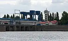 The hydroelectric power plant in Włocławek - the largest continuous-flow power plant in Poland.[1] As a result of the construction of the power plant, a dam lake was created on the Vistula (Włocławek Reservoir). Initially it was supposed to be an element of the cascade of the lower Vistula, but the other dams were never built.