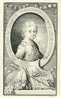 The work was dedicated "to his Royal Highness Prince Frederick, Bishop of Osnabrug, these hymns, composed for his amusement, are, with all due Submission and Respect, humbly inscribed to him, as the best of Bishops, by his Royal Highness's Most Obedient and Devoted Servant, Christopher Smart."[11] Although the prince, the second son of King George III, was only seven at the time, Smart was given special permission to dedicate the work to the boy through the intervention with the royal family by either Richard Dalton or the King's Chaplain, William Mason.[12]
