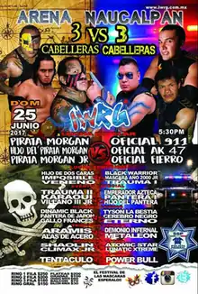 The IWRG 3 Caballera vs. 3 Caballera (Spanish for "3 Hair vs. 3 Hair") show was a major lucha libre event produced and scripted by Mexican professional wrestling promotion International Wrestling Revolution Group (IWRG), that took place on June 25, 2017 in Arena Naucalpan, Naucalpan, State of Mexico, Mexico. The focal point of the Caballera vs. Caballera series of shows is one or more traditional Lucha de Apuestas, or "Bet matches", where all competitors in the match risk their hair on the outcome of the match. The Lucha de Apuestas is considered the most prestigious match type in lucha libre, especially when a wrestlers mask is on the line, but the "hair vs. hair" stipulation is held in almost as high regard.