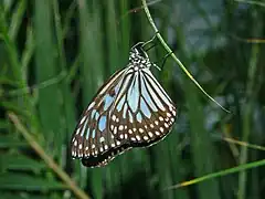Ideopsis vulgaris, the blue glassy tiger, is a butterfly that belongs to the crows and tigers, that is, the danaid group of the brush-footed butterflies family.