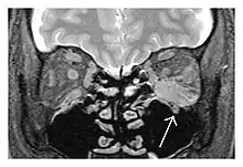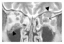 - ↑ J. Ben Soussan; R. Deschamps; J. C. Sadik; J. Savatovsky; L. Deschamps; M. Puttermann; M. Zmuda; F. Heran; O. Galatoire; H. Picard; A. Lecler (19 July 2016). "Infraorbital nerve involvement on magnetic resonance imaging in European patients with IgG4-related ophthalmic disease: a specific sign". European Radiology. 27 (4): 1335–1343. doi:10.1007/s00330-016-4481-5. PMID 27436015. S2CID 645961.
