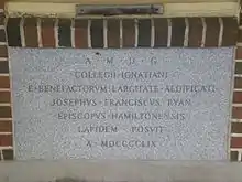 Main entrance to the old Ignatius College with inscription