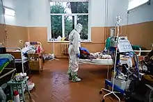 - ↑ "In Russia, 83% of Covid-19 hospital beds are filled amid surge". Business Standard India. Associated Press. 2021-11-10. Retrieved 2021-12-10.