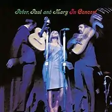 In Concert is a live album by the American folk music trio Peter, Paul & Mary, released in 1964 (see 1964 in music). It was compiled from concerts at San Francisco, Sacramento, Long Beach in California; Daytona Beach, Florida and Terre Haute, Indiana. Supporting the trio, Dick Kniss plays bass. It was digitally re-mixed and re-mastered and released on CD in 1989.