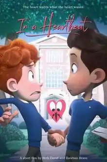 In a Heartbeat is a 2017 American computer-animated short film produced by Ringling College of Art and Design. Written and directed by Esteban Bravo and Beth David, the project was funded through Kickstarter, raising $14,191 from 416 backers on a goal of $3,000.[1] The short film concerns a closeted gay boy, Sherwin, who has a crush on another boy named Jonathan and his heart desires to be with him. The short received wide praise on various platforms and was shortlisted for an Academy Award for Best Animated Short Film.