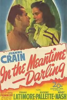 In the Meantime, Darling is a 1944 American drama film produced and directed by Otto Preminger. The screenplay by Arthur Kober and Michael Uris focuses on a wealthy war bride (Jeanne Crain) who is forced to adjust to living in spartan conditions in military housing during World War II.
