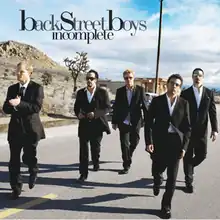 "Incomplete" is a song by American vocal group Backstreet Boys from their fifth studio album, Never Gone (2005). The power ballad[1] was released on April 11, 2005, as the group's first single since they decided to reunite after a two-year hiatus. It was written by Dan Muckala, Lindy Robbins, and Jess Cates, and it was produced by Muckala with Kevin Richardson on piano. According to Billboard magazine's Chuck Taylor, the song is an "emotion-packed, grown-up tome about relationship struggle and strife."[2]