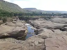 Evidence given by Italian aerial photographs of the catchment, taken in the 1930s show that 55% of the catchment was covered with woody vegetation (against 35% in 2014).[5] Up to the 1980s, there was strong pressure on the environment, and much vegetation disappeared.[6] This river had its greatest discharges and width in that period. The magnitude of floods in this river has however been decreased in recent years due to interventions in the catchment. At Addi Meles, Kidmi Gestet, May Hib'o, Gemgema, May Be'ati and on other steep slopes, exclosures have been established; the dense vegetation largely contributes to enhanced infiltration, less flooding and better baseflow.[7] Physical conservation structures such as stone bunds[8][9] and check dams also intercept runoff.[10][11]