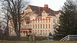 At the end of 2011, the entire Home complex was listed on the National Register of Historic Places.[1] Thirty-one of the fifty-one buildings in the complex qualified as contributing properties,[2]: 2 as did the cemetery and the entire grounds.[2]: 15 The majority of the non-contributing buildings are small semi-permanent structures; enough large historic buildings remain that the property's sense of space and place is not diminished.[2]: 3