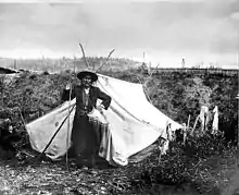Tr'ochëk is a historical Hän fishing site. Chief Isaac, (pictured top right) of the Trʼondëk Hwëchʼin First Nation had a camp here during the Klondike Gold Rush. It is located at the confluence of the Klondike and Yukon Rivers.[52]