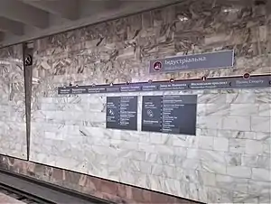 Industrialna (Ukrainian: Індустріальна, ⓘ) (formerly Proletarska) is a station on Kharkiv Metro's Kholodnohirsko–Zavodska Line. It opened on 11 August 1978.