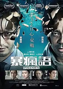Insanity (Chinese: 暴瘋語) is a 2015 Hong Kong-Chinese psychological thriller film directed by David Lee and starring Sean Lau and Huang Xiaoming. It was released on April 2, 2015 in Hong Kong and a day later in China on April 3, 2015.[1][2]