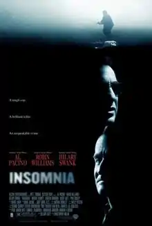Insomnia is a 2002 American psychological thriller film directed by Christopher Nolan and written by Hillary Seitz. It is the only film directed by Nolan that he did not write or co-write. A remake of the 1997 Norwegian film of the same name, it stars Al Pacino, Robin Williams and Hilary Swank with Maura Tierney, Martin Donovan, Nicky Katt and Paul Dooley in supporting roles.
