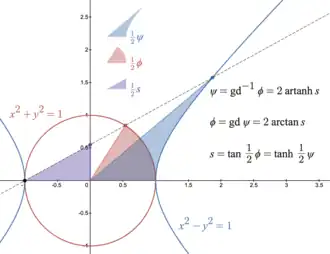 These functions are encountered in the theory of map projections: the Mercator projection of a point on the sphere with longitude λ and latitude ϕ may be written[11] as:
