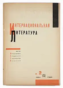International Literature (Russian: Интернациональная литература, tr. Internatsionalnaya Literatura) was a monthly multi-language literary and political magazine published in the Soviet Union from 1933 to 1943. The magazine was based in Moscow. It was published by the International Union of Revolutionary Writers (or the International Association of Revolutionary Writers) until December 1935, when the Union of Soviet Writers took over.
