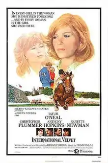International Velvet is a 1978 American film and a sequel to the 1944 picture National Velvet starring Tatum O'Neal, Christopher Plummer, Anthony Hopkins and Nanette Newman, and directed by Bryan Forbes.[1] The film received mixed reviews. International Velvet was partly filmed at Birmingham University, England.